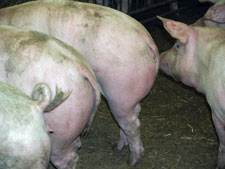 Figur 3. Allerede før et udbrud af halebid begynder, vil man ofte se grise, der putter halen (foto: Helle Lahrmann).
