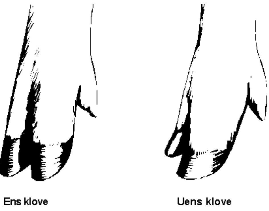 Figur 2. Ens og uens klove hos svin (Tegning: Ukendt, billednr. 5799).