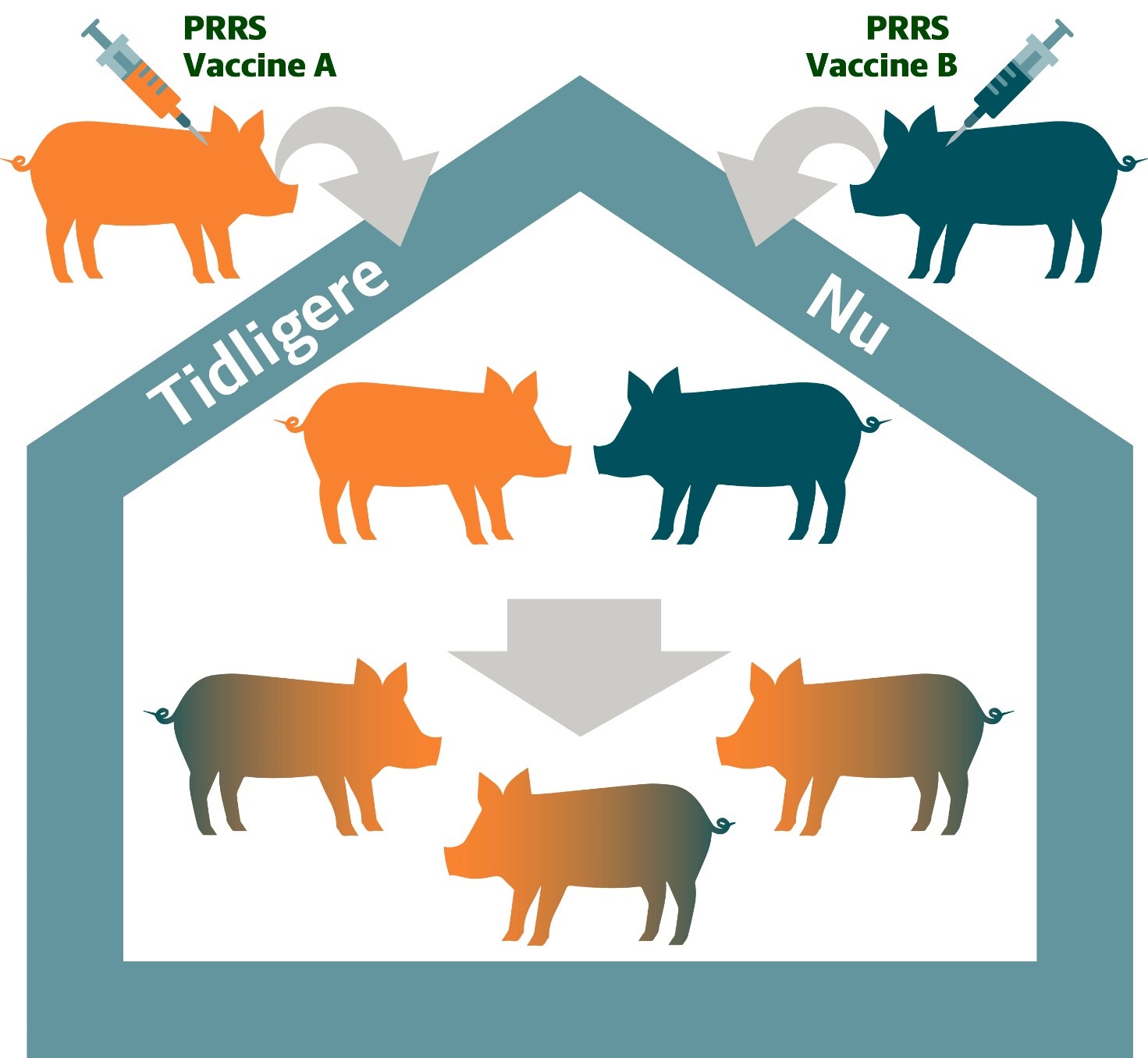 Sådan en rekombinant variant kan også opstå, når to PRRS-vacciner af samme type bruges på forskelligt tidspunkt i den samme besætning. PRRSV-vacciner består nemlig af levende PRRSV, der er blevet svækket, så de ikke giver sygdom. Hver PRRSV-vaccine har sin variant.