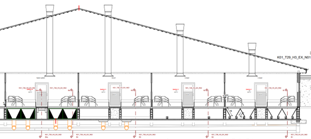De skrå kummevægge er med til at reducere overfladearealet for gyllen og dermed reducere ammoniak-emissionen. Indtil videre har alle tre systemer vist en reduktion på metan og ammoniak.