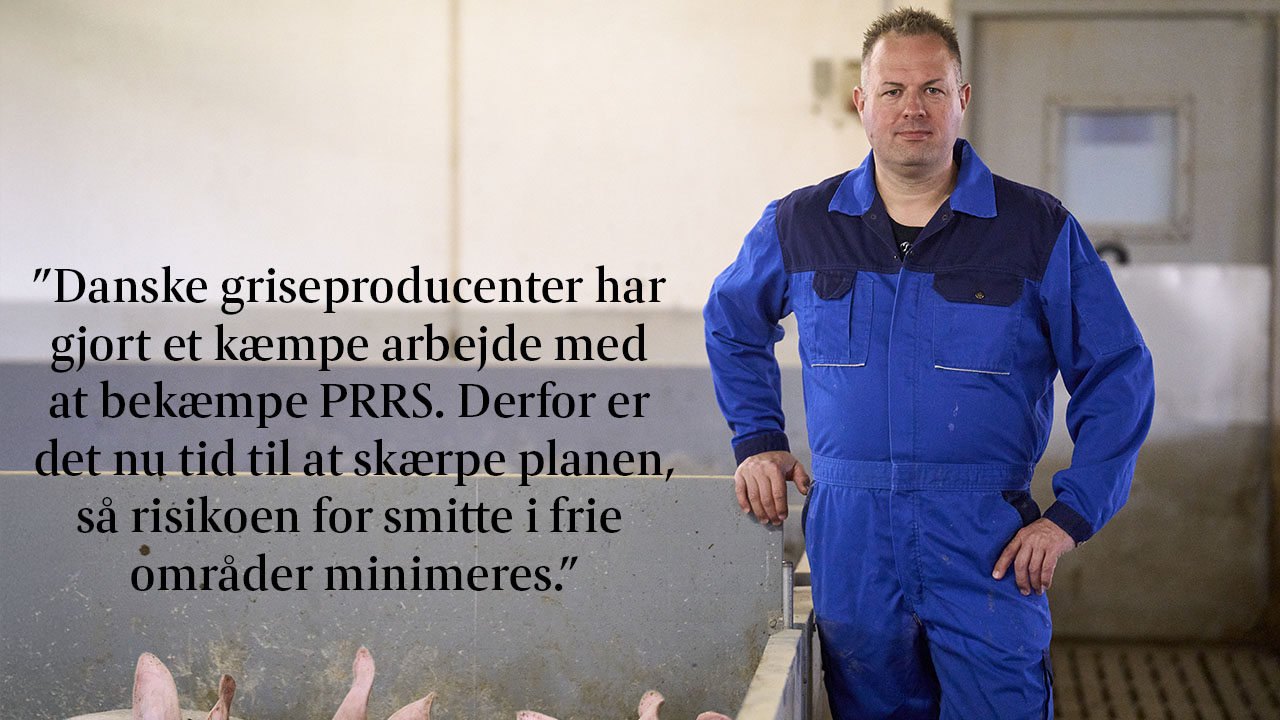 "Danske griseproducenter har gjort et kæmpe arbejde med bekæmpelsen af PRRS. Det er godt gået. Derfor er det nu tid til at skærpe planen, så risikoen for smitte i frie områder minimeres. Det er helt afgørende for at støtte op om de griseproducenter, som har brugt kræfter og ressourcer på at blive fri", siger HC Gæmelke, formand for Landbrug & Fødevarer, Sektor for Gris.