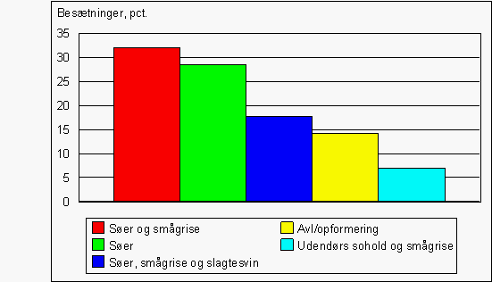 En overraskende stor del af bedrifterne (knapt 30 pct.) var specialiserede i at producere fravænnede grise. Derudover var leverandørerne forholdsvis jævnt fordelt på smågrise- og slagtesvineproducenter, avlsbesætninger og enkelte besætninger med udendørs sohold.