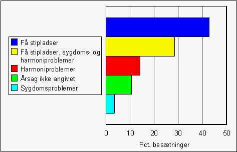 Ca. 40 pct. af besætningerne angav “for få stipladser” som den væsentligste salgsårsag. Dertil kom næsten 30 pct., som angav “for få stipladser” kombineret med “harmoniproblemer” (manglende jordtilliggende i forhold til husdyrproduktionens størrelse) og “sygdomsproblemer” som væsentligste begrundelse for afsætning af fravænnede grise.
