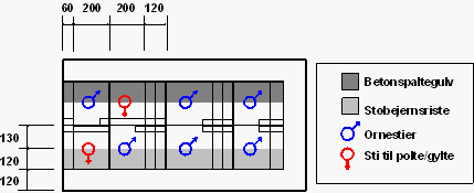 I figur 1 - 3 er vist udsnit af løbestaldenes indretning