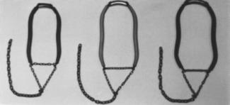 Store øjer forneden på bindselsstængerne bevirkede, at samlekæden kunne bevæge sig frit og dermed hurtigt fastholde soen.